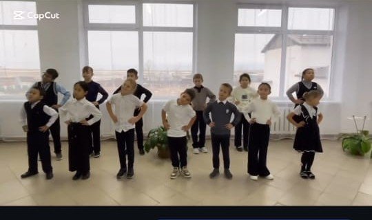 Полтавск ауылының жалпы орта білім беретін мектебінің 1-4 сынып оқушылары 5 минуттық дене жаттығуын жасады.