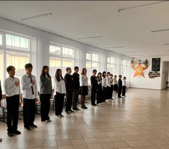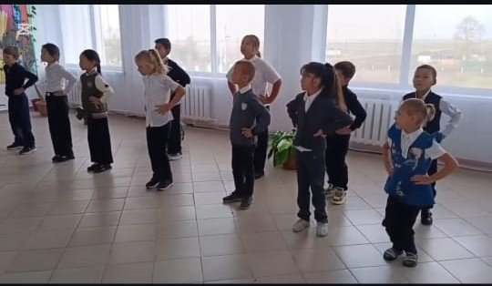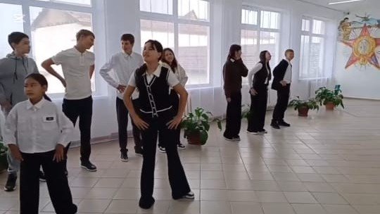 Полтавск ауылының жалпы орта білім беретін мектебінің 5-9 сынып оқушылары 5 минуттық дене жаттығуын жасады.