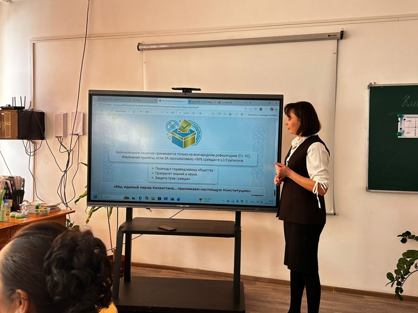 19 ақпанда педагогикалық ұжыммен Құқықтық сағат өткізілді: Тең қолжетімділік, білім сапасы және педагогтың конституциялық нормаларды жүзеге асырудағы рөлі.